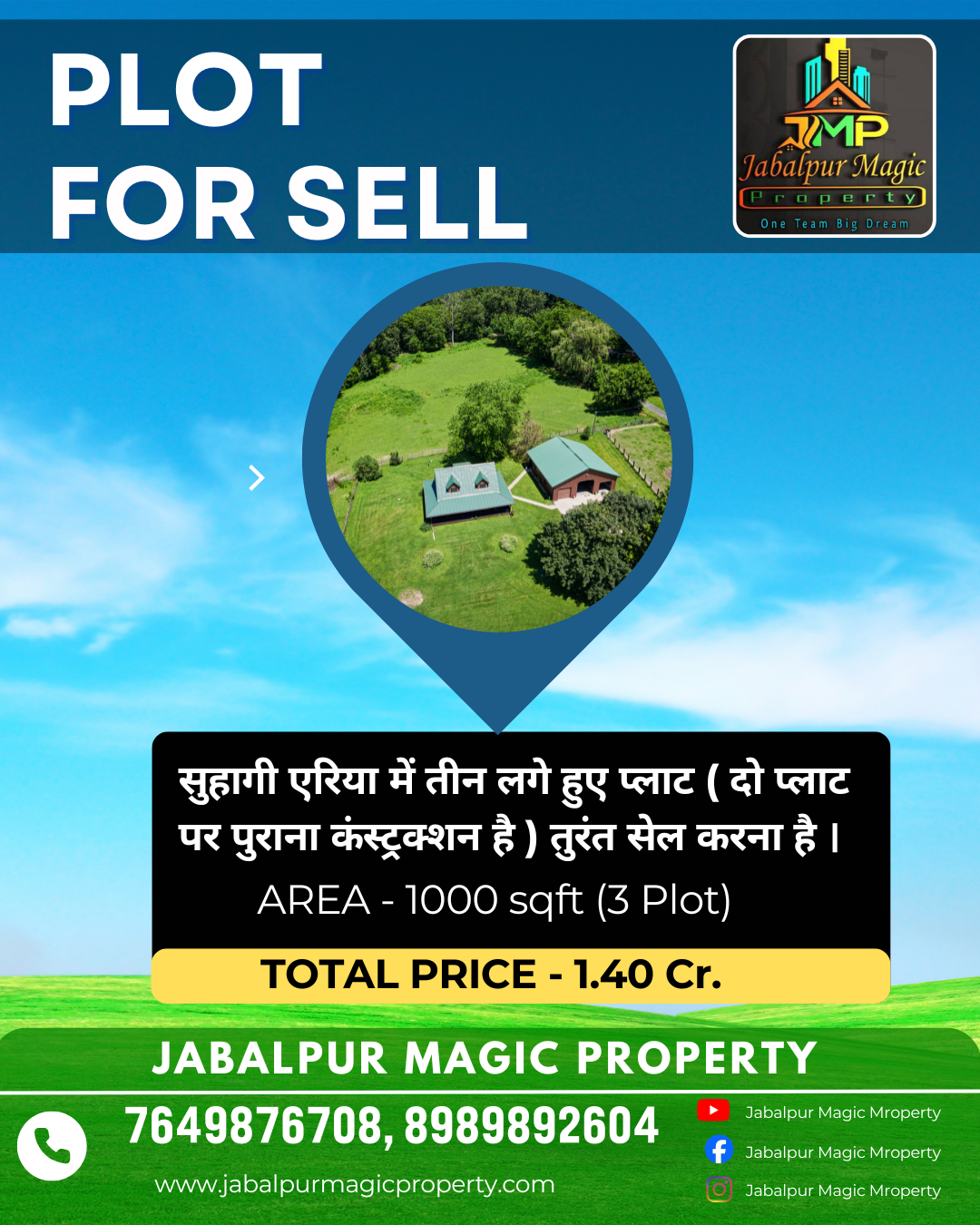 घमापुर, बाई का बगीचा में, पंजाब नेशनल बैंक के पास, 900 sqft एरिया पर बना, डबल स्टोरी मकान, तुरंत बेचना है (पार्किंग सुविधा)। रेट - 55 लाख. संपर्क करें - +91 7649876708, +91 8989892604.