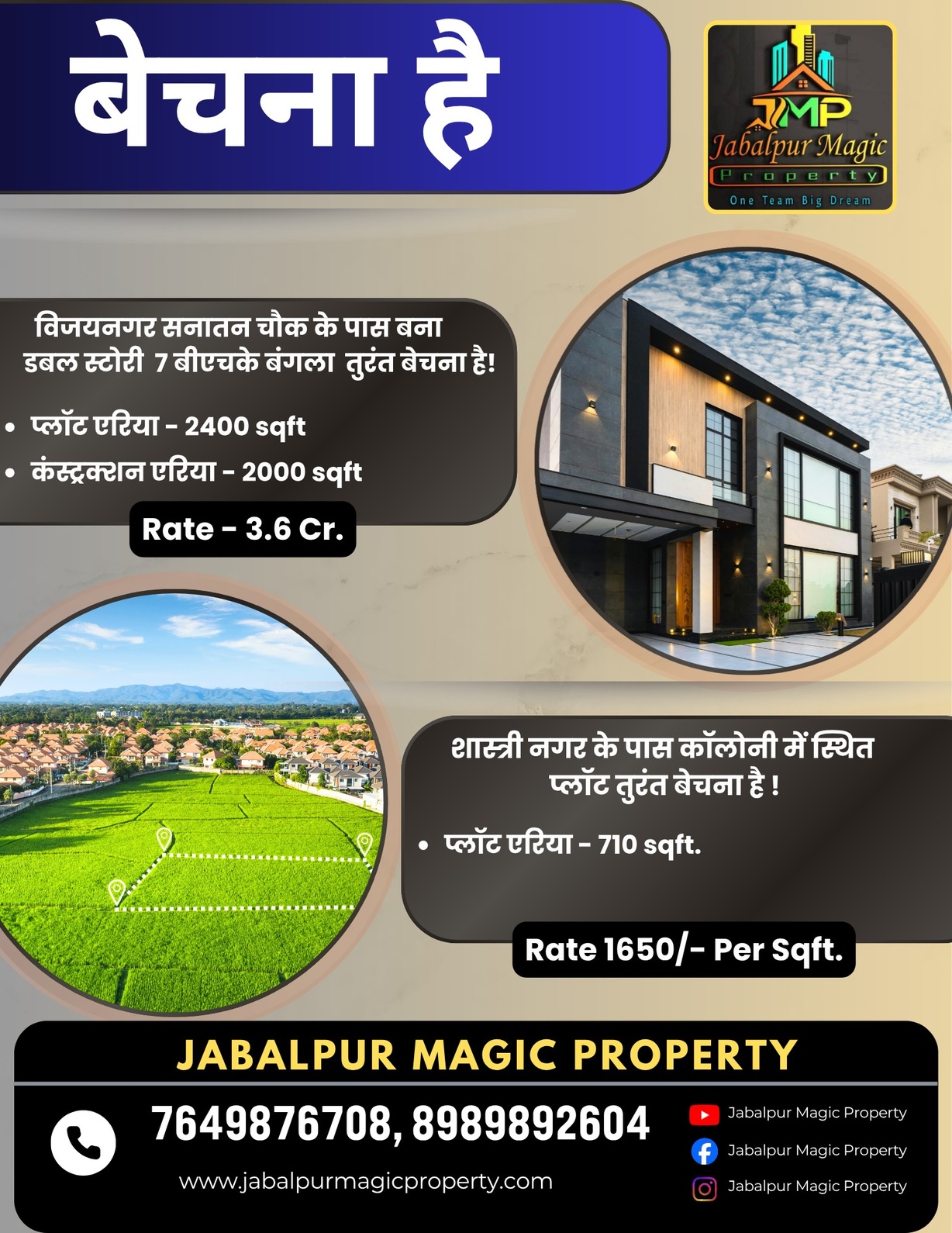 (i). विजयनगर, सनातन चौक के पास, 2400 sqft प्लॉट एरिया पर बना (कंस्ट्रक्शन एरिया - 2000 sqft), 7bhk बंगलो तुरंत बेचना है। रेट - 3.6 करोड़।
